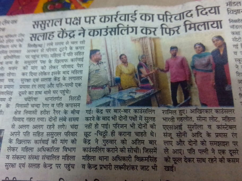 • पारिवारिक परामर्श केन्द्रों द्वारा निःशुल्क परामर्श से बहुत सारी महिलाएँ लाभान्वित हुई हैं।